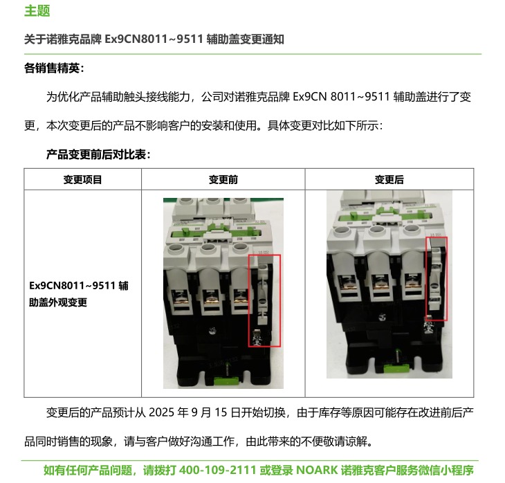 關(guān)于諾雅克品牌 Ex9CN8011~9511 輔助蓋變更通知